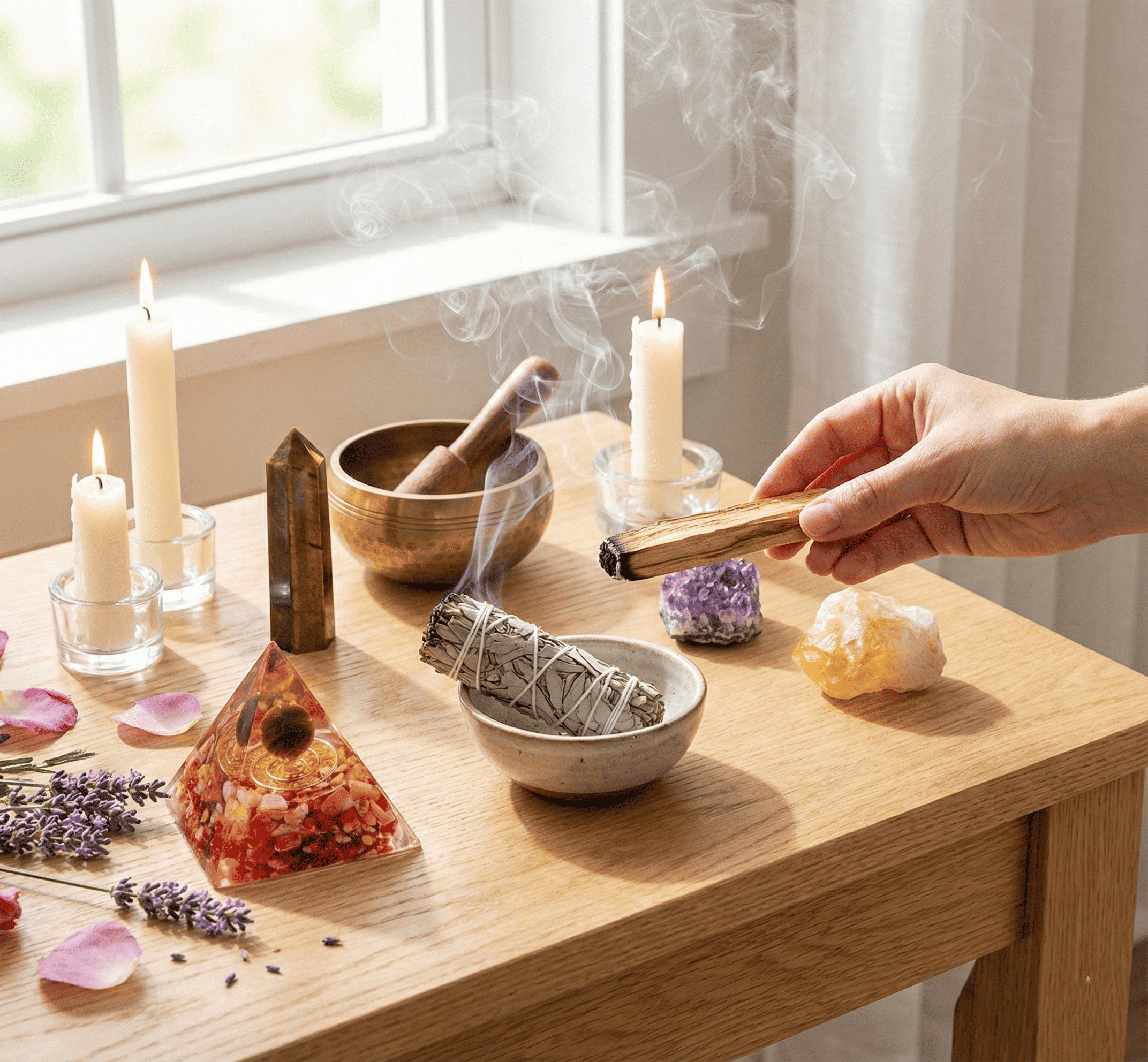 Готови енергийни практики за пречистване, защита и ново начало. Всеки ритуал е подбран като завършено преживяване – с кристали, аромати и насоки, които те водят стъпка по стъпка към освобождаване от натрупаната негативна енергия.
